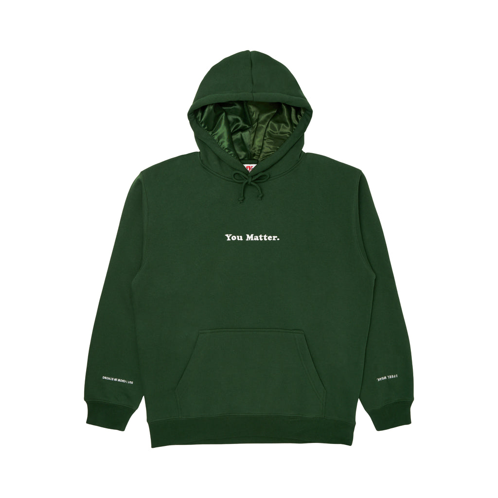 "I Feel Weak, But I Know I'm Strong" embroidered on the inner wrists of the left and right sleeve.