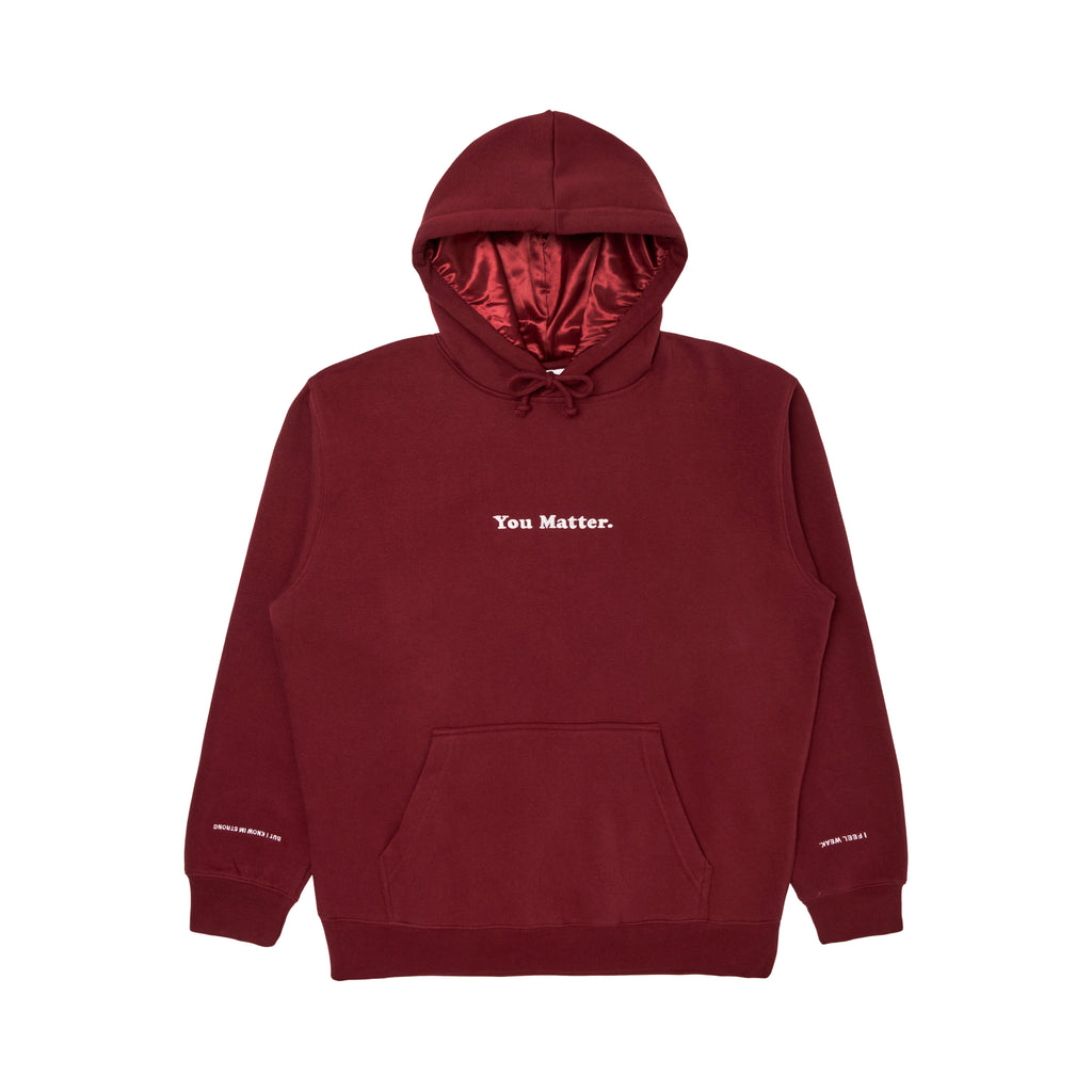 "I Feel Weak, But I Know I'm Strong" embroidered on the inner wrists of the left and right sleeve.