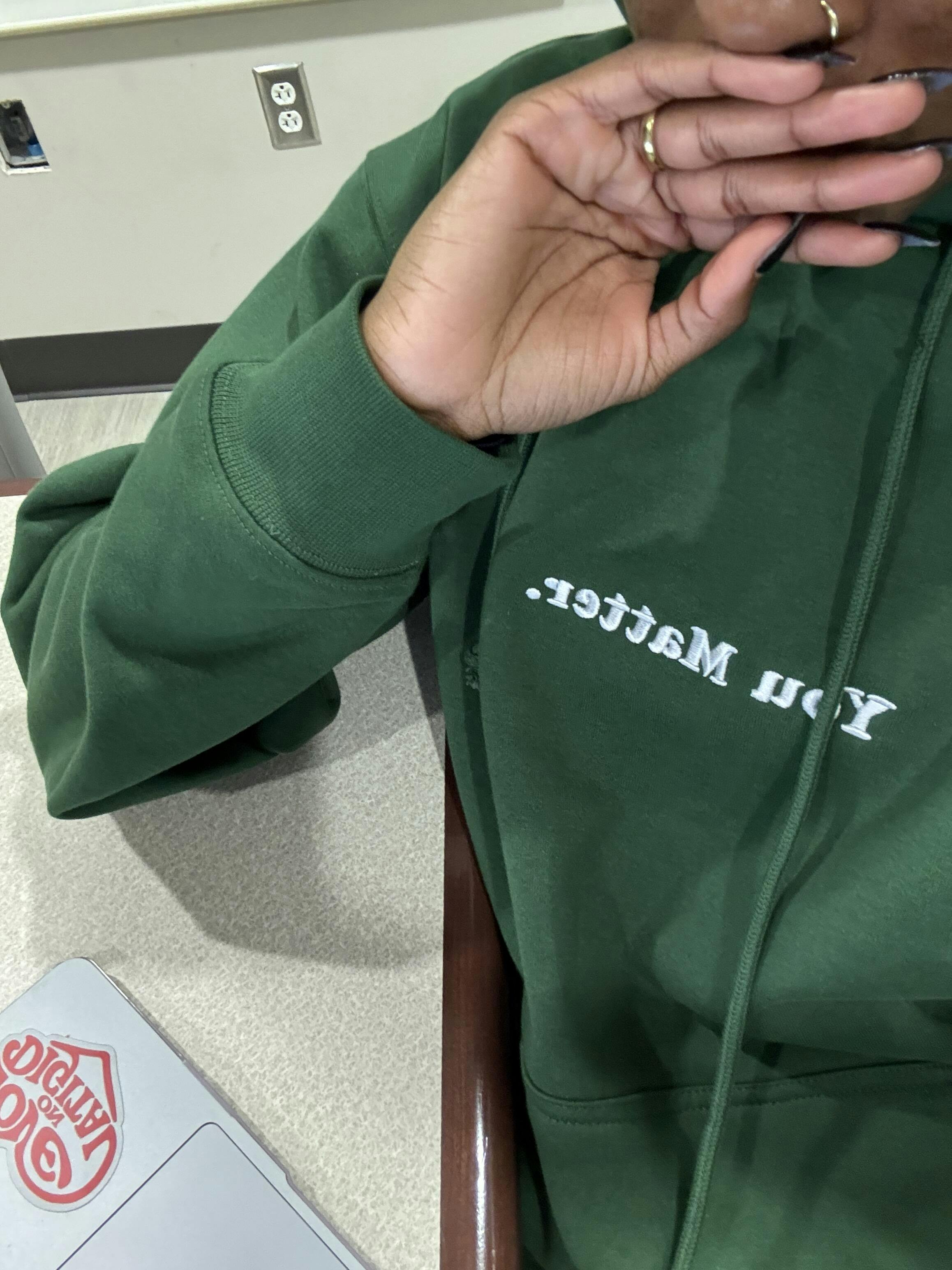 Embroidered 'You Matter' on the chest.